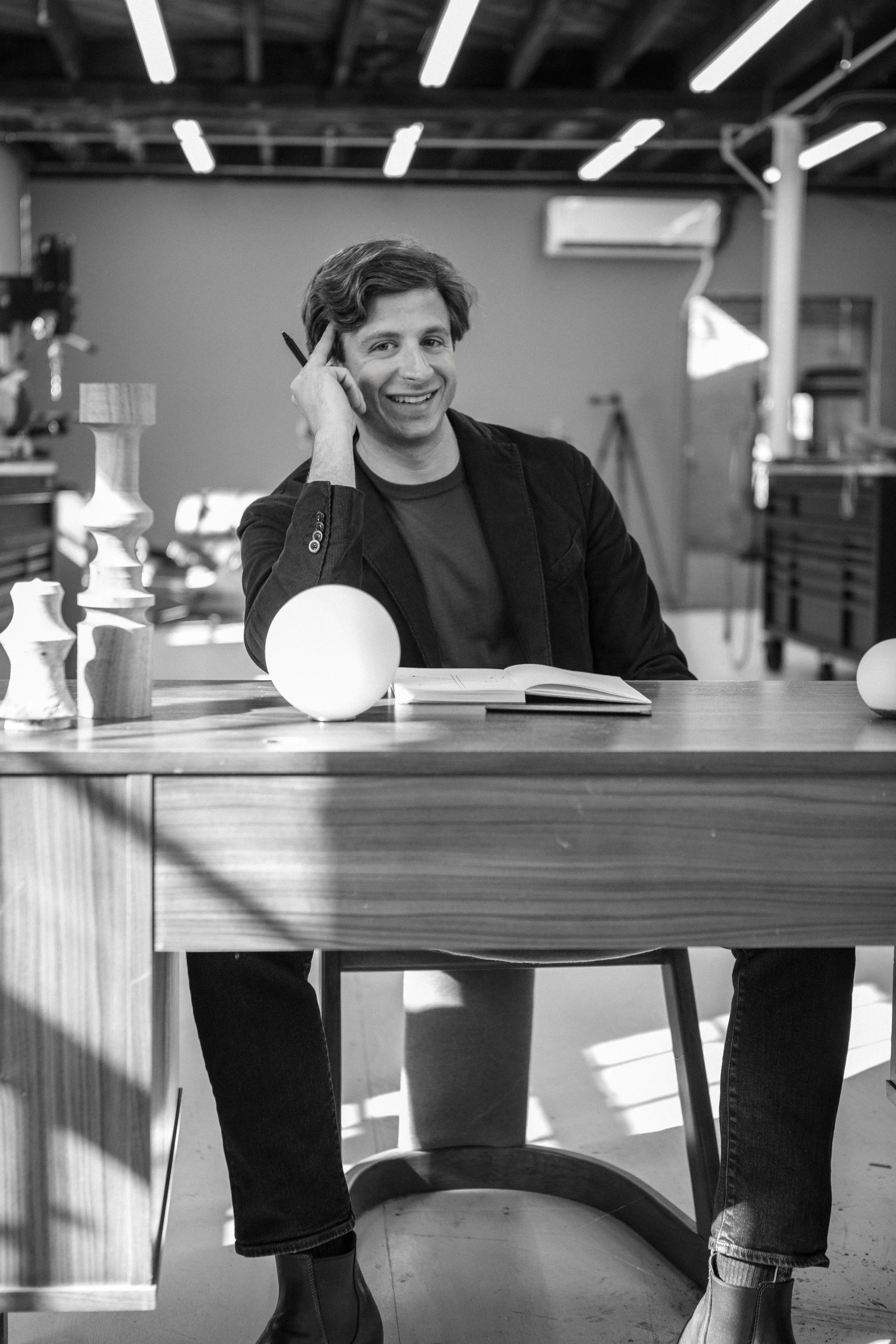 Rizzo brings a high level of engineering rigor to every product, establishing best practices for how each piece is constructed, how components interact, and how designs translate into high-quality production. He works with a deep understanding of manufacturing, leading diverse groups of specialized craftsmen to realize different aspects of his designs. With expertise across manual and CNC metal machining, bending, glass blowing, metal spinning, woodworking, and stone carving, he ensures the integrity of the work at every stage.